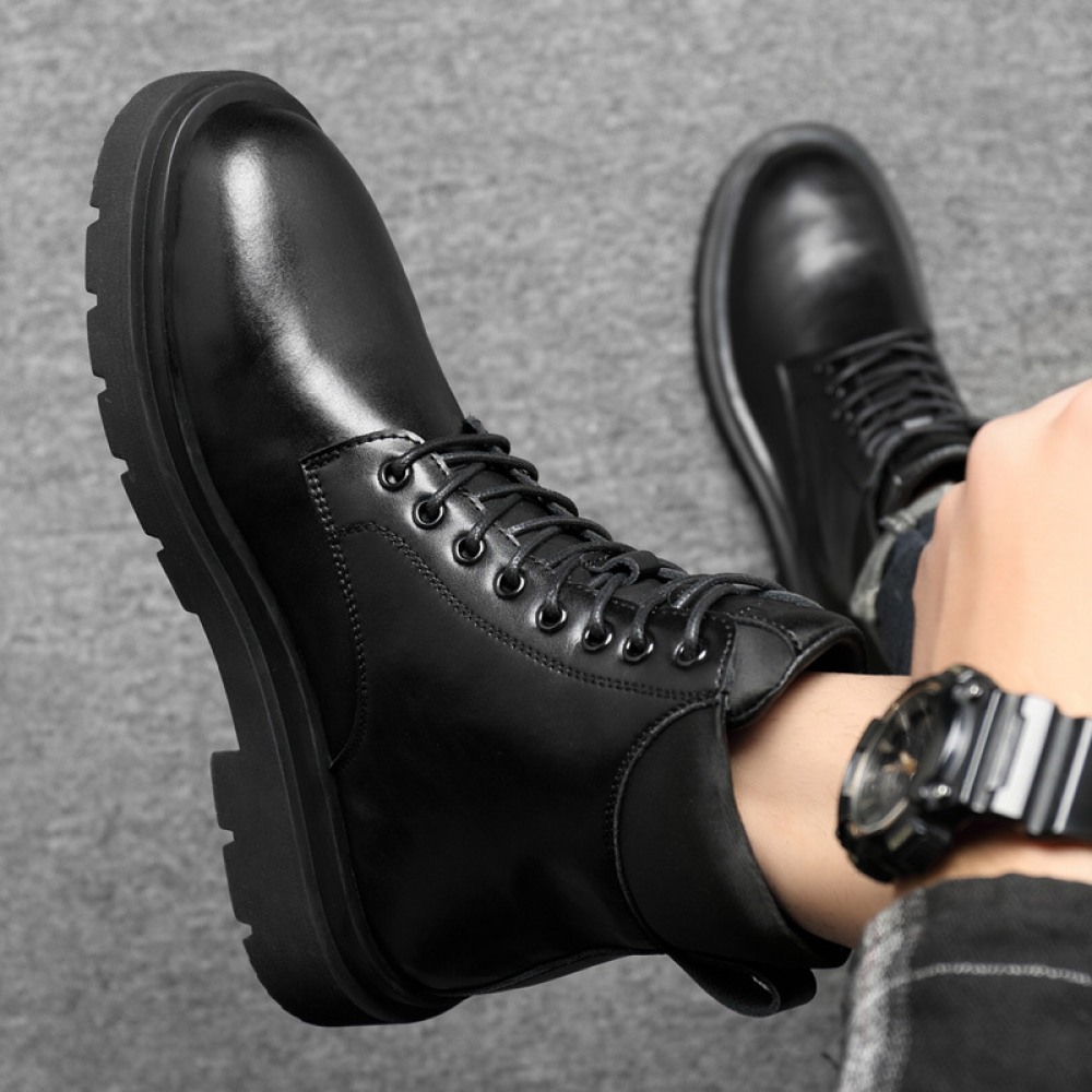 Autumn New Leather Men's Leather Boots Front Lace-Up Low-Heel Martin Boots Mens Shoes