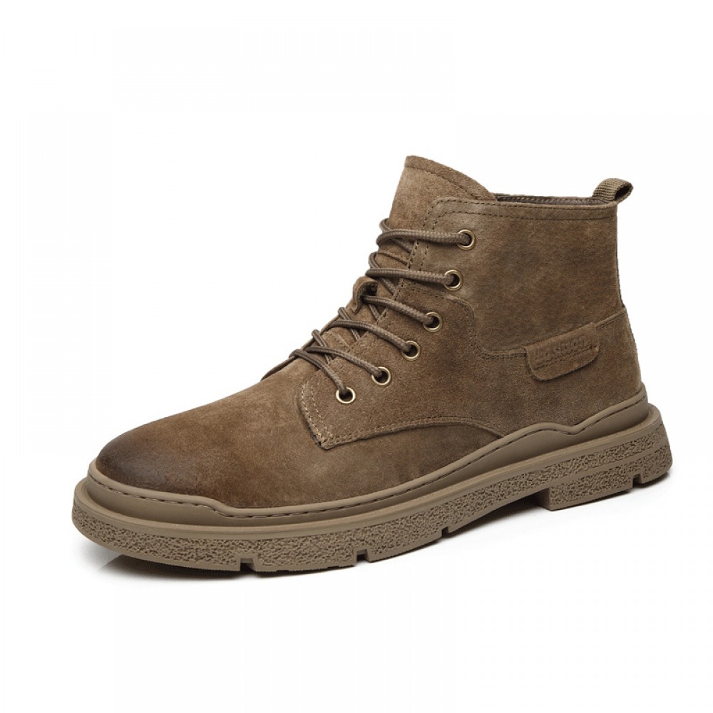 Autumn New Leather Men's Leather Boots Front Lace-Up Low-Heel Martin Boots Mens Shoes