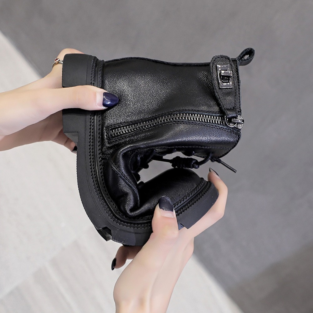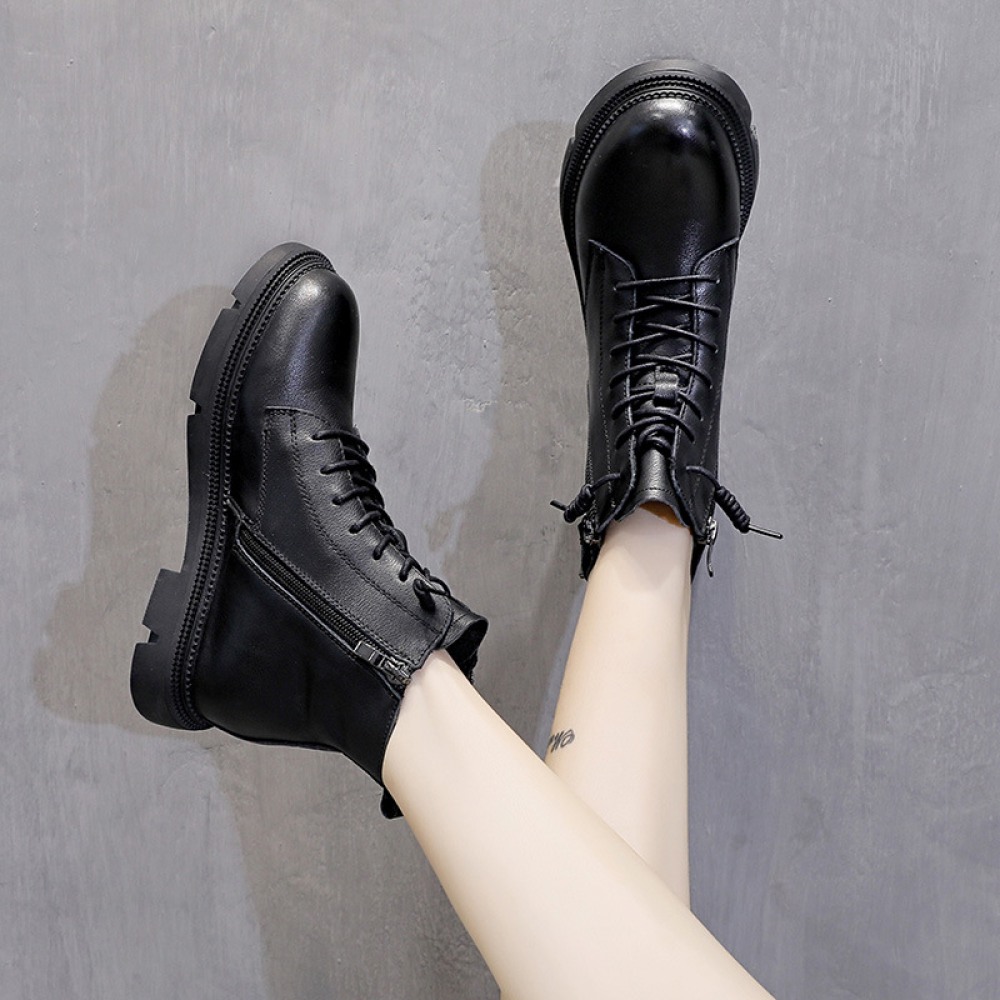 Autumn New Martin Boots Female Round Toe Thick Bottom Tube Black Short Boots Trend
