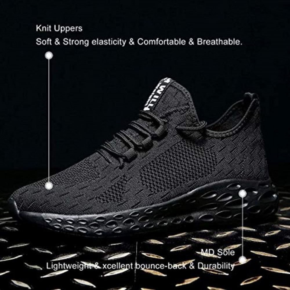 Mens Running Shoes Slip On Walking Shoes Fashion Breathable Sneakers Mesh Soft Sole Casual Athletic Lightweight All-Black