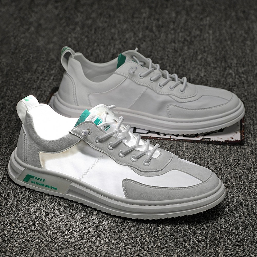 Men's Shoes Trend Autumn New Low-Cut Lace-Up Sneakers Casual Style Shoes Breathable Cloth Shoes Silver Shoes