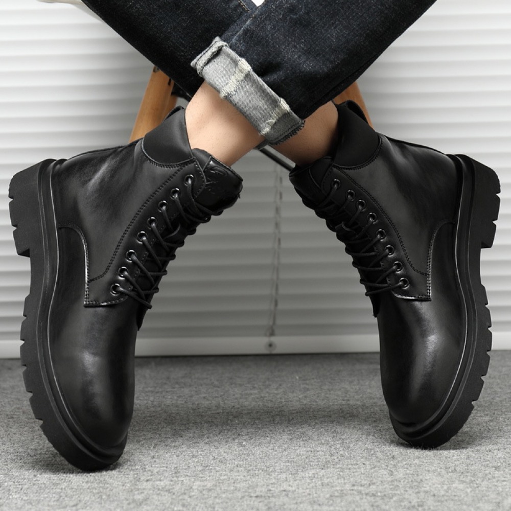 Autumn New Leather Men's Leather Boots Front Lace-Up Low-Heel Martin Boots Mens Shoes