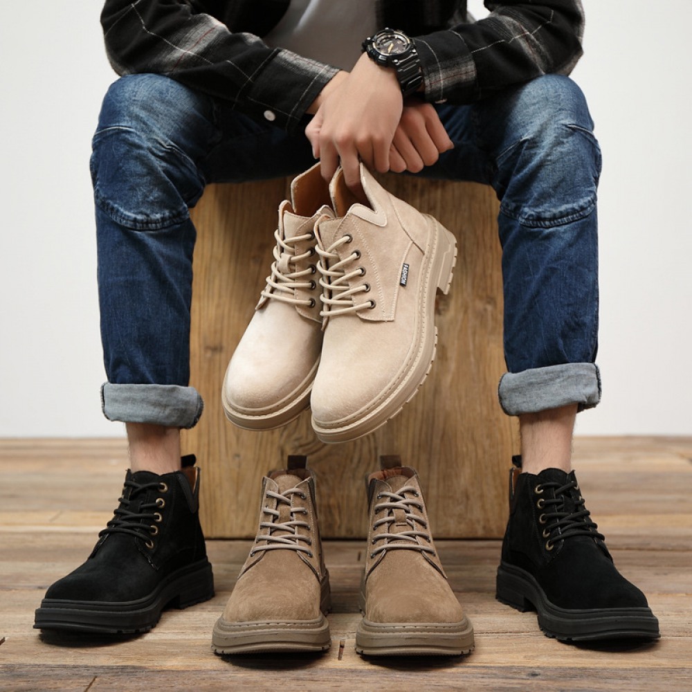 Autumn New Leather Men's Leather Boots Front Lace-Up Low-Heel Martin Boots Mens Shoes