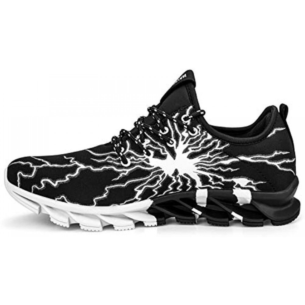 Men's Non Slip Gym Sneakers Lightweight Breathable Athletic Running Walking Tennis Shoes Black-White
